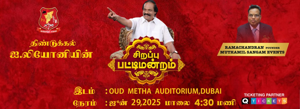 We’d all remember 29th June 2025, as it is the date when LEONI NAKAICCUVAI PATTIMANDRAM lands in Dubai at the Pakistan Association Club, Oud Mehta. It is going to be an unforgettable experience as one would think, laugh, and cheer all at the same time. It’s going to perfectly blend modern concepts with humor, surpassing the boundaries of traditional Tamil debate or ‘pattimandram’.